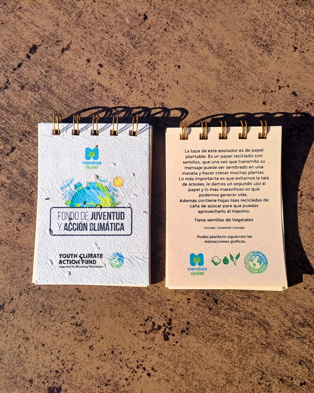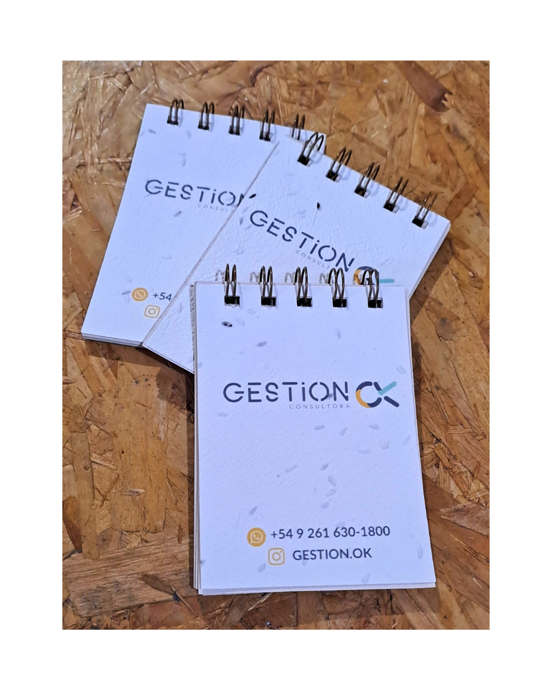 Anotadores A7 – Pequeños, prácticos y sustentables 🌱 📏 Tamaño: A7 (7,4 x 10,5 cm) – Compacto y fácil de llevar ✨ 🌿 Tapa: Papel reciclado con semillas 🌾 ¡Personalizala y sembrala después! 📜 Hojas: 30 lisas de papel caña de azúcar ♻️ Aprovechamos cada hoja al máximo. Anillado metálico superior 🔄 Ideal para anotar sobre la marcha. 💡Liviano, versátil y con impacto positivo ✅ Solo hojas lisas 👉 más libertad, sin desperdicio de espacio 🚀 📖 Incluye descripción de los materiales para que quien lo reciba pueda sembrar la tapa o compostarla 🌎 🎨 Contratapa personalizable (con costo adicional). 📦 Pack x50 unidades ⏳ Tiempo de entrega: 10 días hábiles. 💚 Ideal para anotar grandes ideas en un formato sustentable! ♻️ 🌍Podés consultarnos vía whatsapp al 2613348103