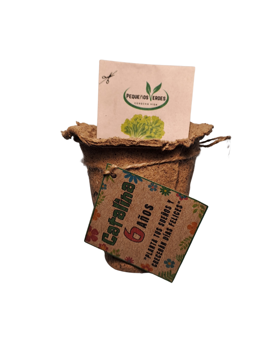 Regala souvenirs llenos de conexión con la naturaleza. El kit incluye: 💚 Maceta biodegradable de cartón recuperado 💚 Tarjeta 5 x 5 cm de papel craft personalizada, impresión simple faz. 💚 Sobre pequeño de semillas agroecológicas de huerta. Combo por 25 unidades. Tiempo de entrega 10 días hábiles. Una vez realizada tu compra, nos contactamos vía whatsApp y coordinamos diseño y entrega 📲