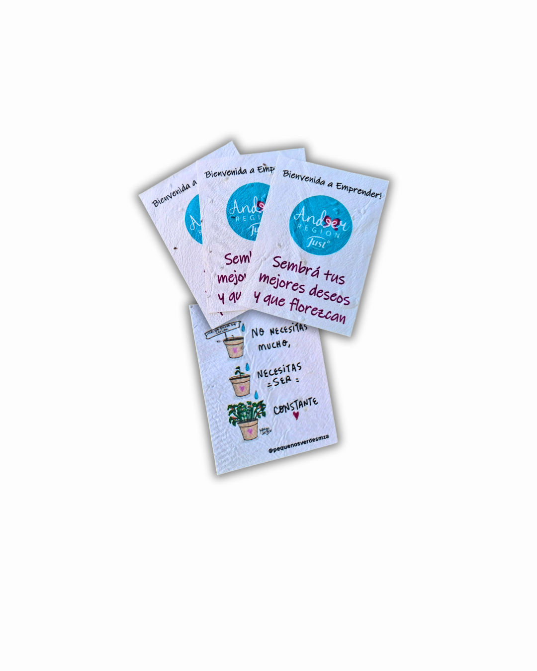 🌱 Tarjetas Plantables: Una Alternativa Ecológica 🌿 Revoluciona el concepto de tarjetas tradicionales con esta opción sostenible que transforma los desechos en vida. Perfectas para eventos, invitaciones o mensajes especiales con un impacto positivo en el ambiente. 🌼 Renacimiento Natural: Una vez utilizada, plántala y observa cómo se convierte en una nueva planta, fomentando la reducción de residuos. ♻️ Material Sostenible: Papel reciclado con semillas, completamente biodegradable. ✨ Personalización Flexible: Impresión a elección*, simple o doble faz, para adaptarse a tus necesidades. 📦 Especificaciones del Producto: Medida 5x7 cm aprox. Pack de 50 unidades. Papel reciclado con semillas. ⏳ Tiempo de Entrega: 10 días hábiles. *No se realizan fondos full color 💚Personalizadas con tu logo o info de tu marca. Una vez realizada tu compra, nos contactamos vía whatsApp y coordinamos diseño y entrega. Consultanos los precios si necesitas otras cantidades al📲 2613348103.