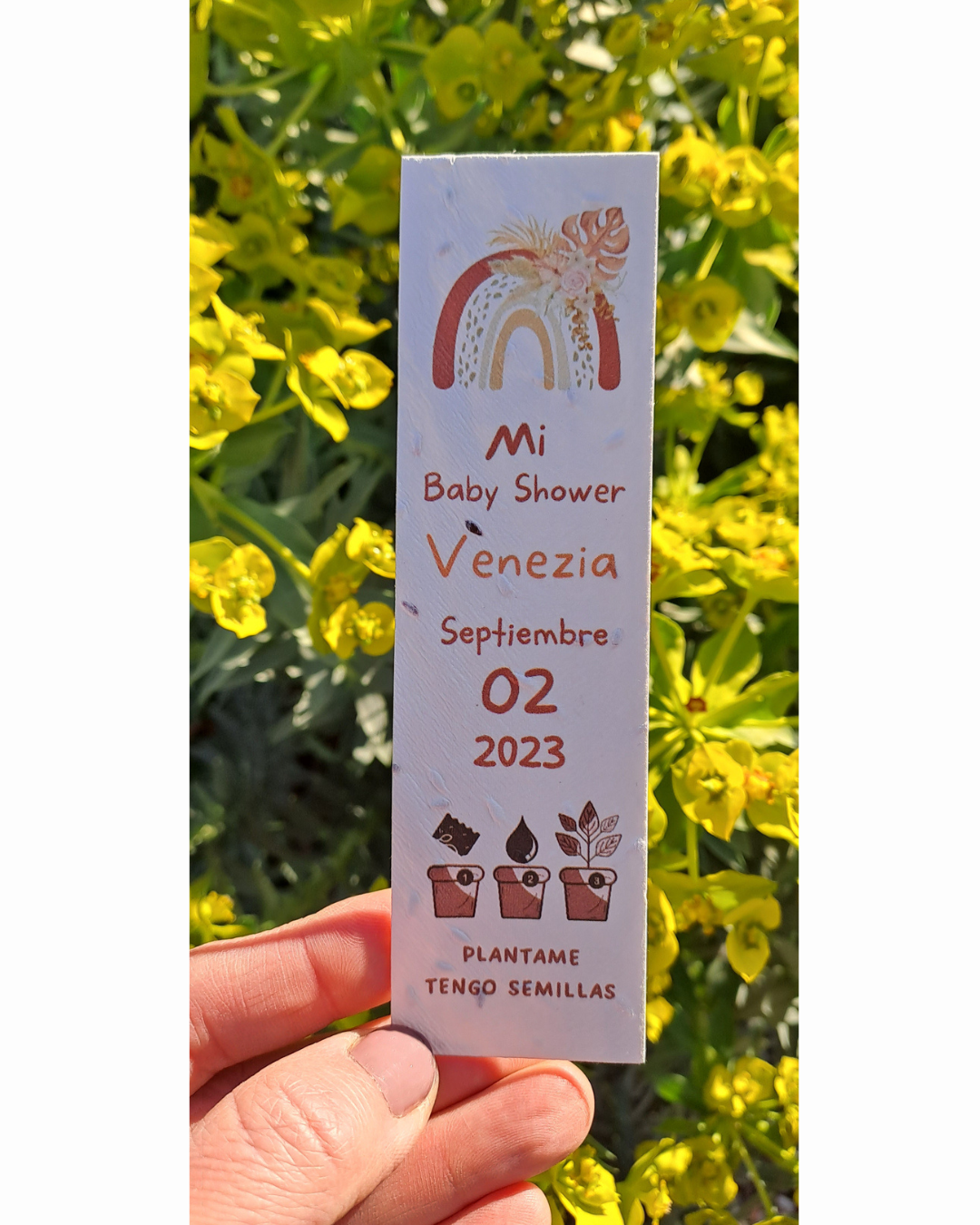 🍃 Señaladores de Papel Reciclado Plantable. 🌎Nuestros señaladores plantables son una opción ecológica y versátil para tu festejo familiar, pueden usarse como tarjeta o marcador de páginas. Están hechos de papel reciclado con semillas, tras su uso, pueden sembrarse y crear vida. 💚Se personalizan SIN COSTO con la temática o info de tu evento. Impresión simple o doble faz. Cantidad mínima para personalizar 25 unidades. Tiempo de entrega 10 días hábiles. Medidas 4x14 cm aprox. 🤩Consultanos vía whatsapp al 2613348103.📲